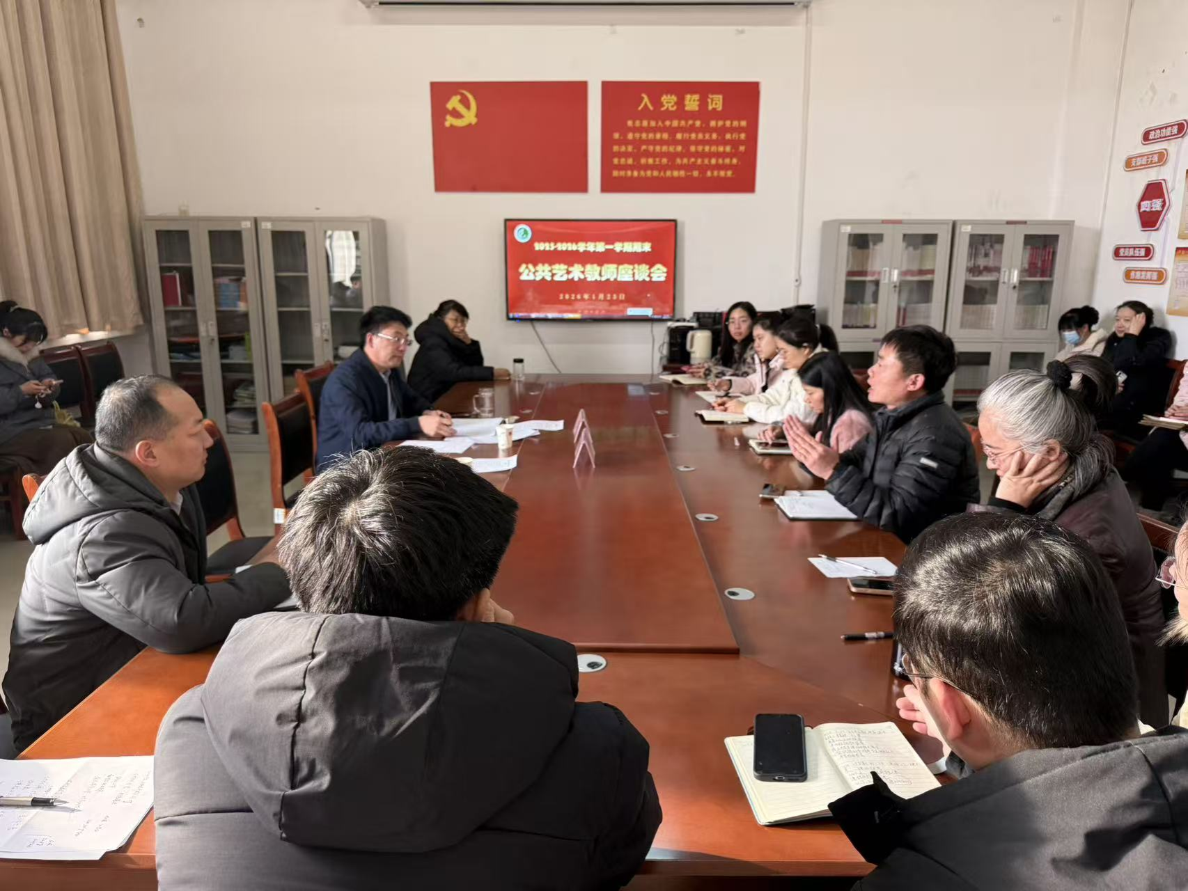 1月23日上午,公共艺术教育中心在行政楼719会议室召开2025-2026学年第一学期期末全校公共艺术授课教师座谈会,教务处处长李青彬,艺教中心全体人员及全校公共艺术授课教师参加会议,会议由艺教中心主任刘斐主持。